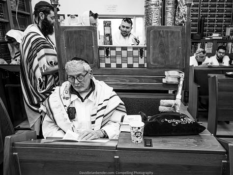 Turns out the guys all remembered me after five years away; (besides many I've kept in touch with or met regularly in the interim), and my pew was even unoccupied (!!👏). Speaking of which: it's a tiny place that holds maaaaybe 50 in a crush and underwent recent major renovations and the pews are brand new, as is the Torah ark, and the woodwork, ceramics and lots more - thanks to a donor. Suffice to say it used to be a kinda' soulful, but, umm, an aging and even dingy place - and the 1950s exterior is, well, still nothing to look at. But the soul of the facility lies in its occupants - and I clicked back into the soul groove of the place, well, immediately...