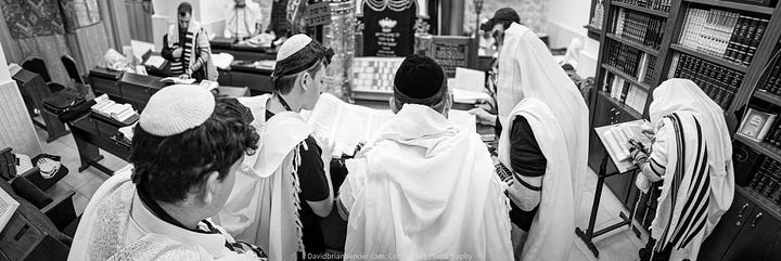 Members of my old synagogue in Tzfat reading the Megilat (Scroll of) Esther.